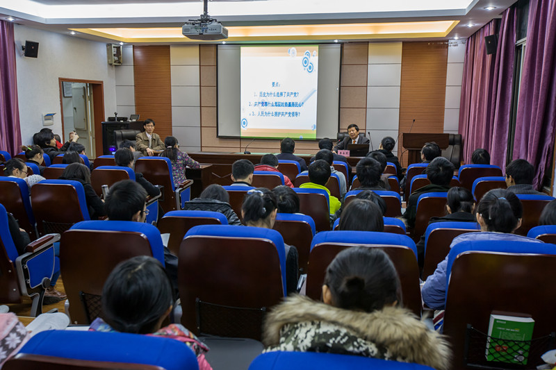 李教授从四个方面分析、讲解了题意:1、历史为什么选择了共产党。2、共产党靠什么驾驭时势赢得民心?3、人民为什么拥护共产党领导?4、共产党有美好的明天吗?并与在座的师生就题意进行了很好的互动,现场气氛活跃、热烈,讲座圆满结束。