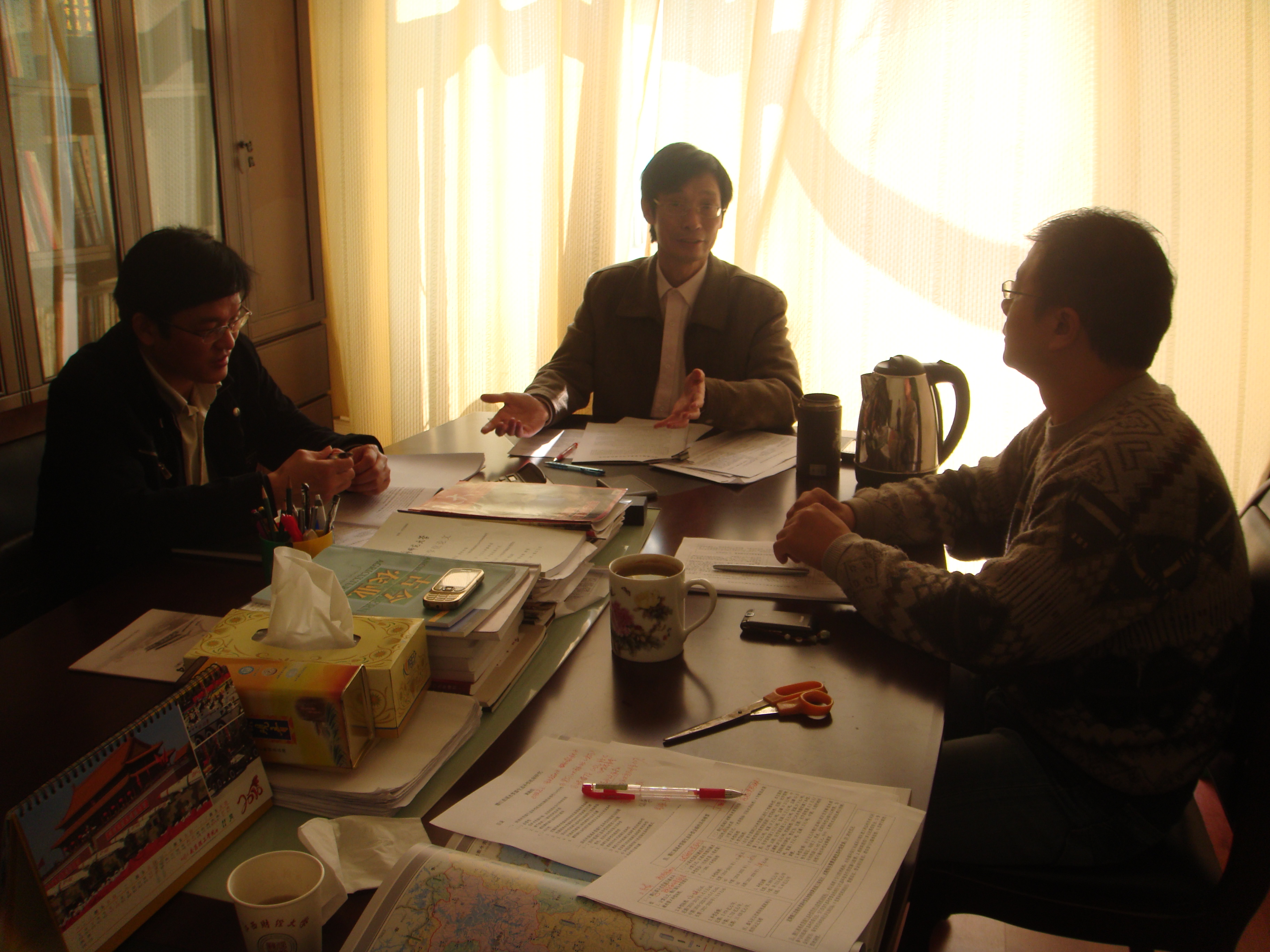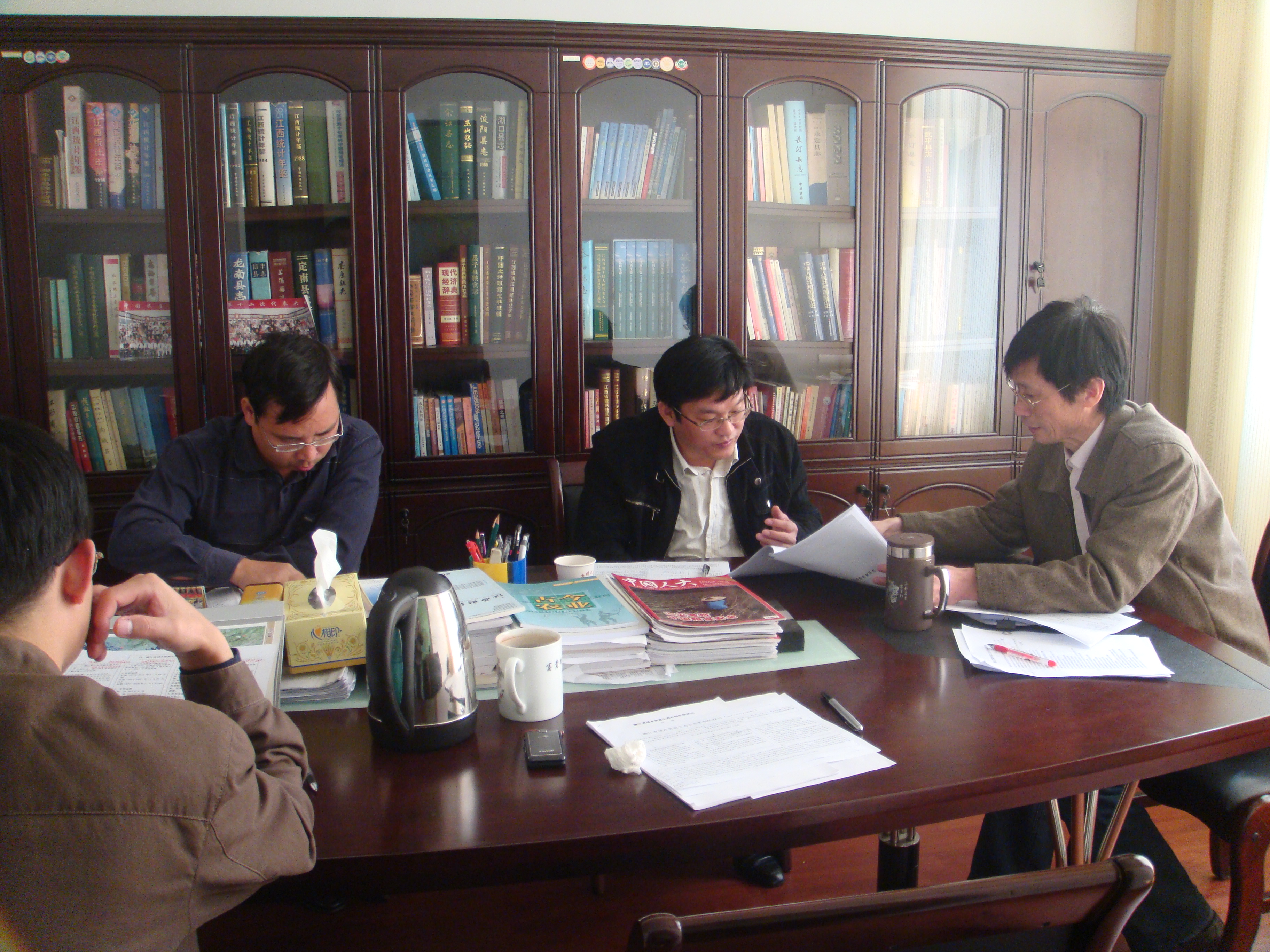 在7月3日课题研讨会的基础上,2010年11月5日下午,课题研究主要执笔人和江西财大生态中心研究人员,在江西财大生态中心召开课题期中研讨会。水利厅邢久生和江西财大生态中心的温锐、刘世强、曹国新、杨华星等参加了会议,中心主任温锐教授主持了会议交流与讨论。整个研讨针对期中文本的目录、补偿核算等文本与成果的具体问题进行了细致交流,为课题文本的最终定稿奠定了基础。