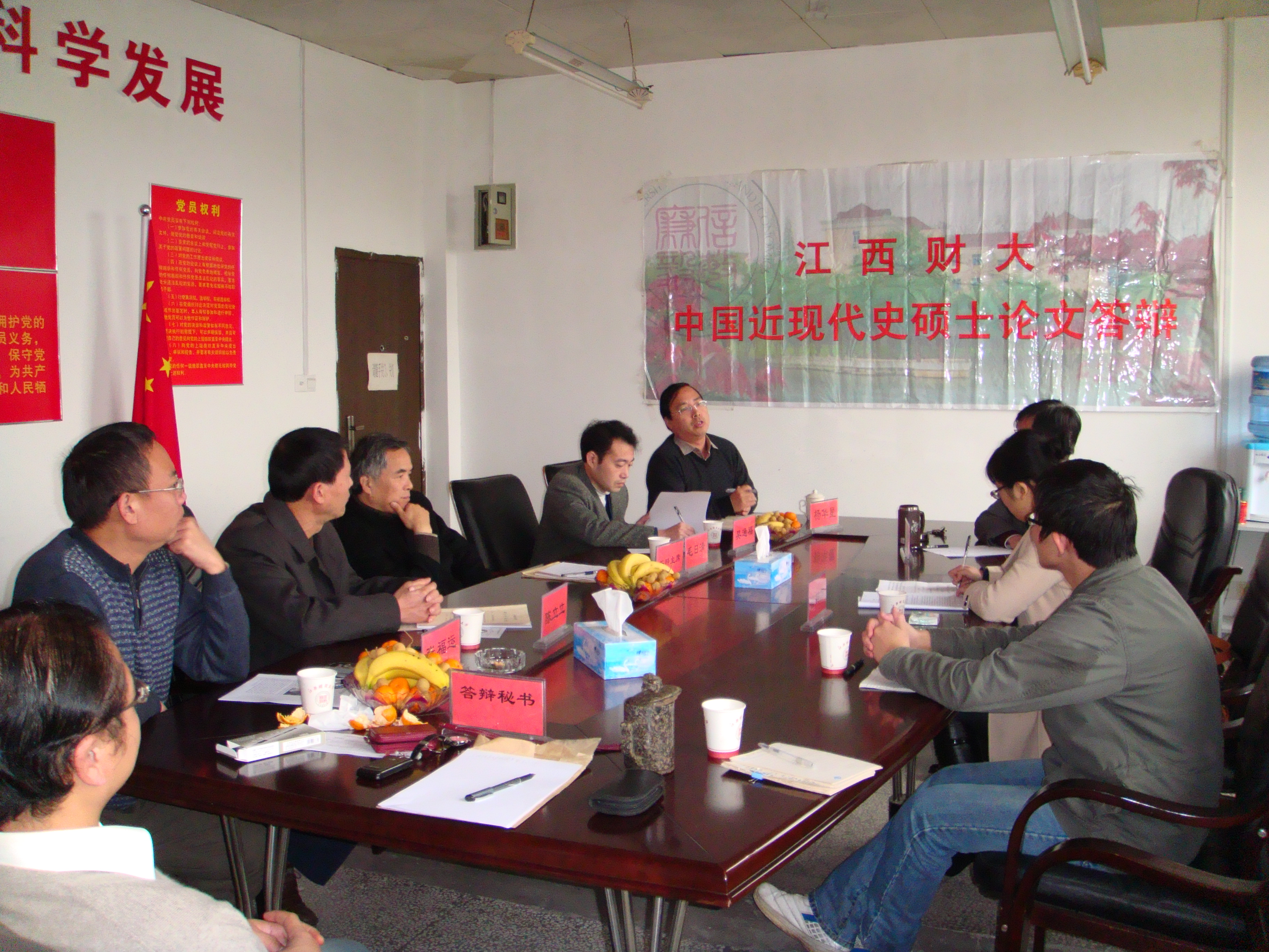 2010年12月13日上午9:00-11:00,生态文明与现代中国研究中心在马克思主义学院会议室召开中国近现代史专业硕士论文答辩会。
